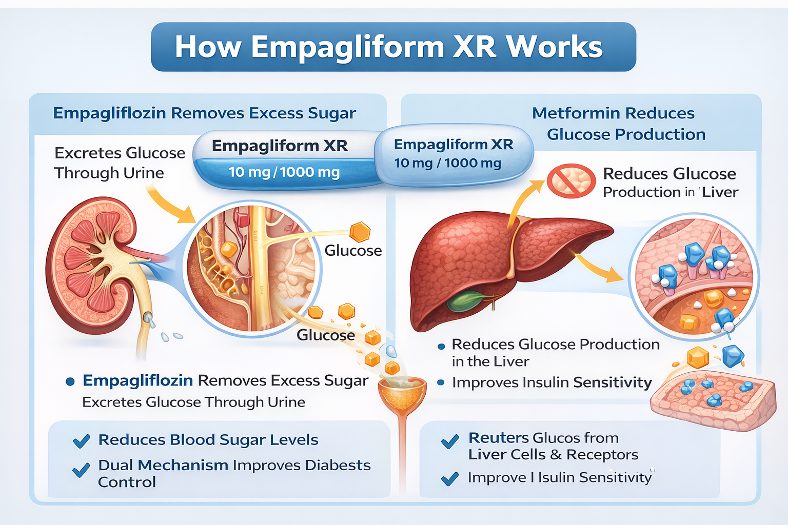 Empagliform XR 10/1000 mg tablet uses make it a powerful option for managing type 2 diabetes. With the combined benefits of empagliflozin and metformin, it provides effective blood sugar control, improved insulin sensitivity, and potential cardiovascular benefits.